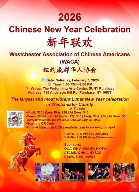 由纽约威郡华人协会(WACA)主办的2026马年威郡新年联欢会将于2月7日(周六)隆重举行!